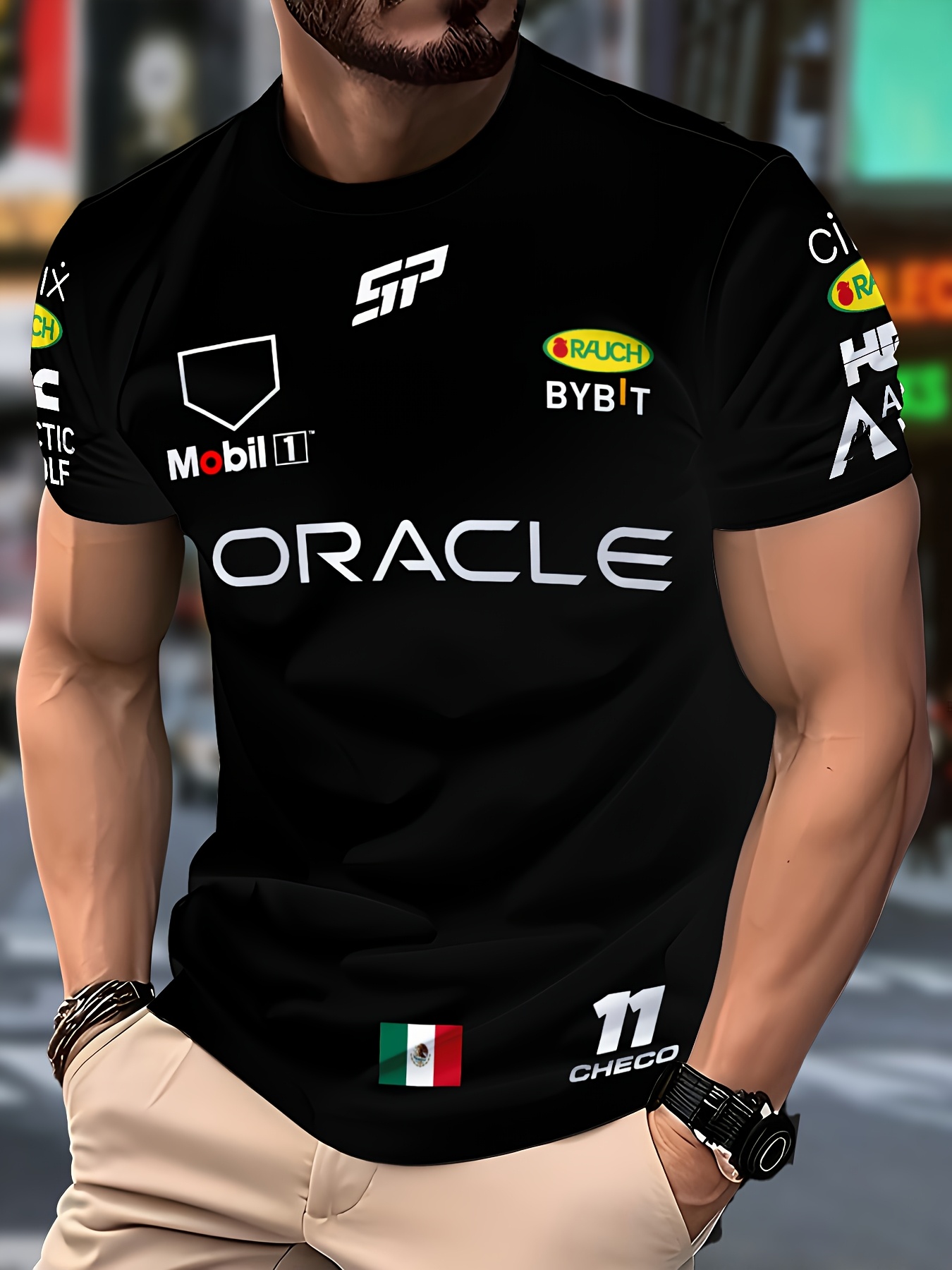 Camiseta Masculina Preta de Poliéster Estilosa com Impressão Branca em Negrito “ORÁCULO” – Camiseta Casual de Gola Redonda para Vestuário Casual – Lavável à Máquina