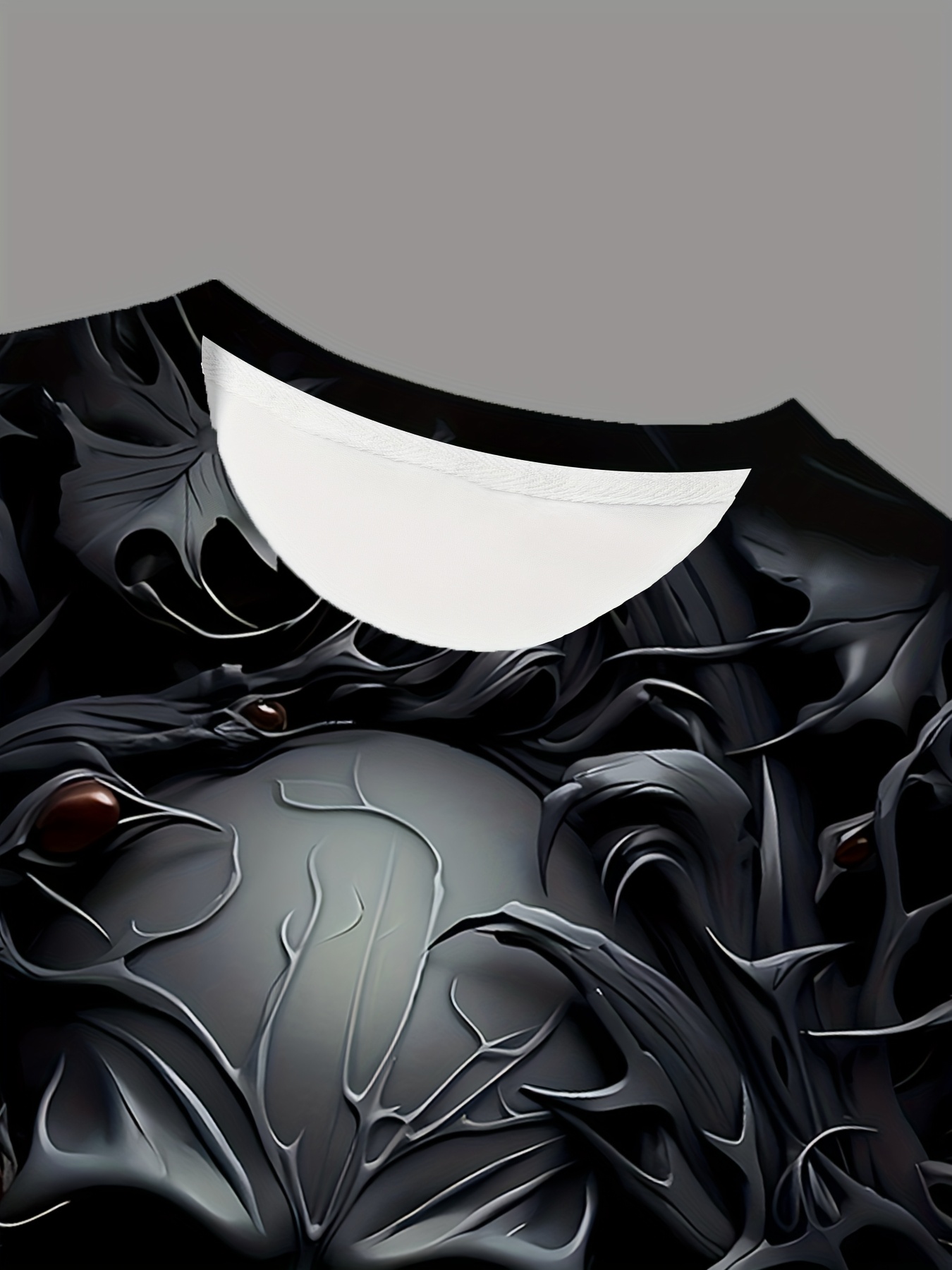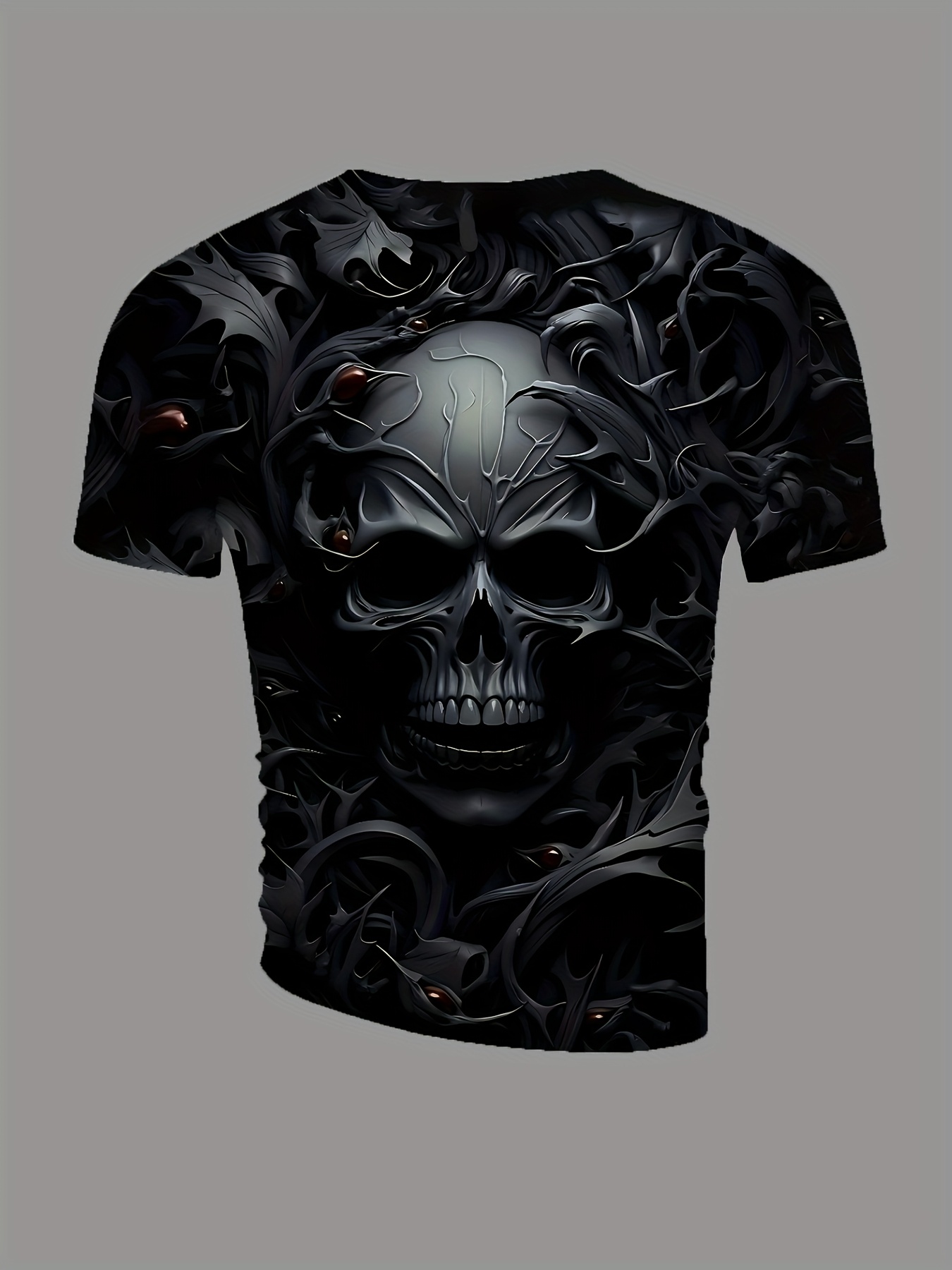 Camiseta Masculina com Estampa 3D de Caveira Horrorosa – Design Assimétrico para Halloween, Ajuste Regular Casual Streetwear, Top de Manga Curta para o Verão, Somente Lavagem à Mão, Roupas de Halloween, Moda Urbana, Tecido Não Transparente