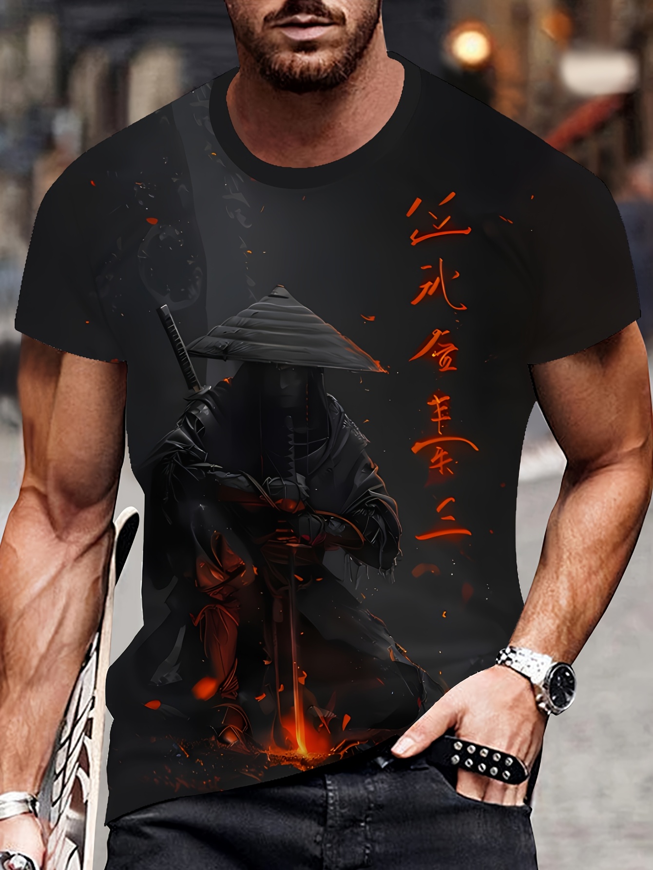 Camiseta Masculina com Estampa 3D de Samurai Japonês – Design Realista Ninja e Katana, Corte Confortável Elástico, Ideal para Uso Casual em Todas as Estações, Roupas de Anime para Homens, Roupas Japoneses para Homens, Coisas Japonesas, Camiseta de Anime para Homens, Vestuário Asiático para Homens, Camiseta Masculina com Dragão, Camiseta Masculina para Jogos, Camisas Japonesas Para Homens, Roupas Japoneses para Homens, Camisas Masculinas de Anime
