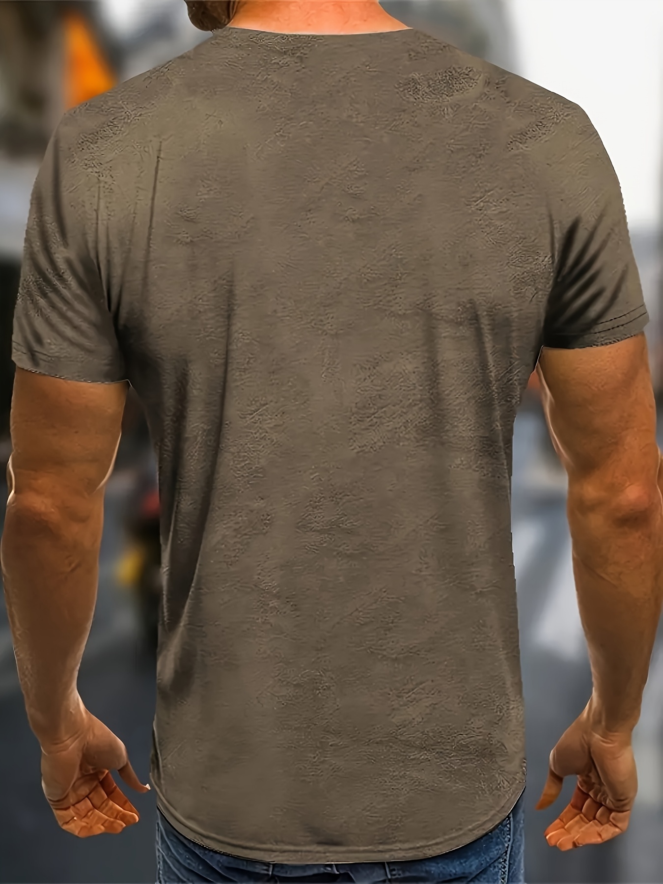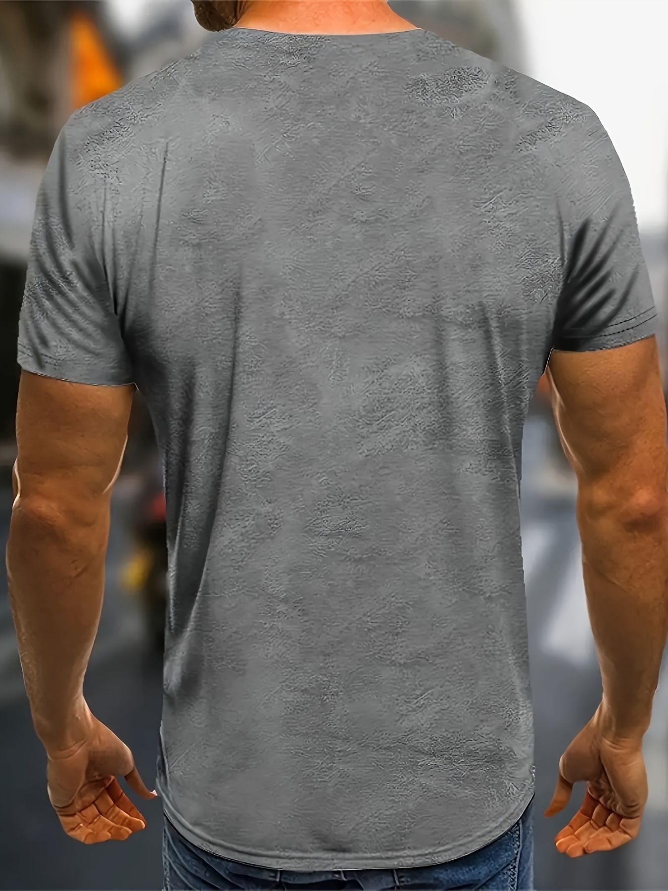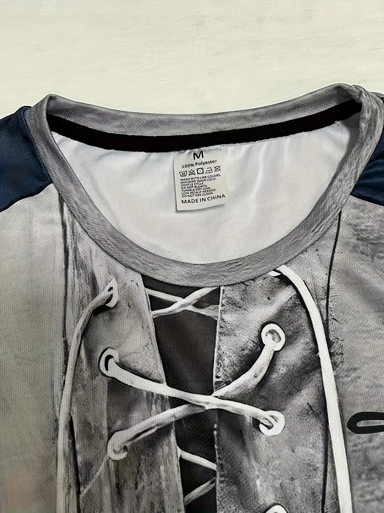 T-shirt casual de verão para homem – Estampa cinza com cordão de imitação impressa em 3D, poliéster respirável, lavável à máquina, ajuste regular, manga curta, decote redondo para desporto e vestuário casual, tecido confortável